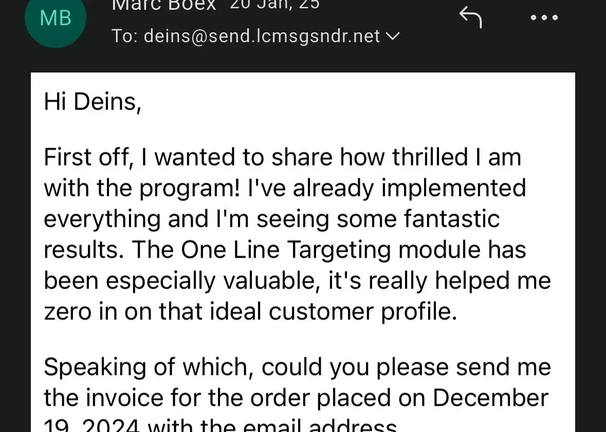 All without 30 minute VSL's, video ads, long sales texts.